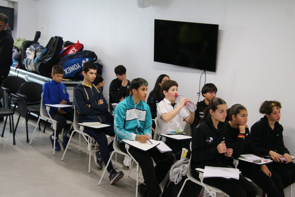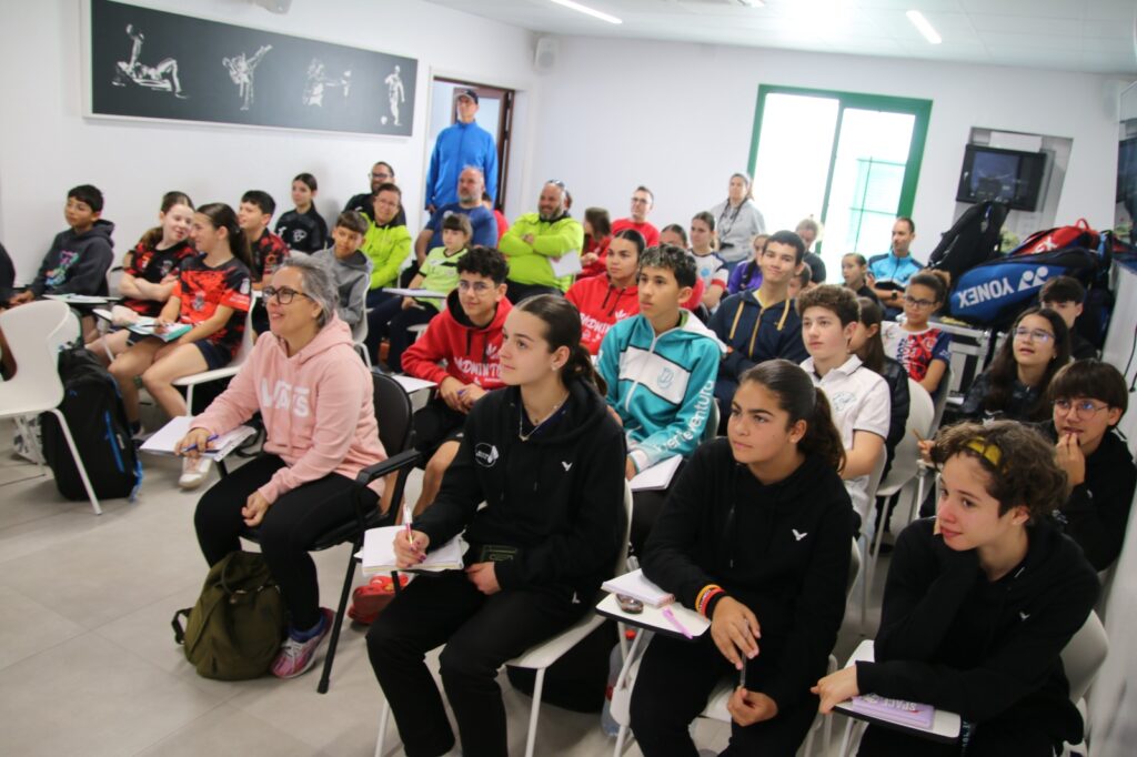 La jornada de tecnificación se ha completado con charlas de formación teórica y física, en las que se ha trabajado la nutrición deportiva, con aspectos tan importantes como los hábitos alimenticios, la alimentación durante la competición y la nutrición. También se ha trabajado la psicología deportiva, haciendo hincapié en la gestión emocional, la concentración y la actitud competitiva. Y se ha explicado la preparación física específica, con trabajo adaptado al bádminton, la prevención de lesiones y la mejora del rendimiento.
